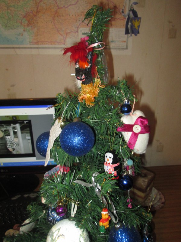 А мы с ыночком сегодня елку наряжали. Я игрушки вешала, а он снимал