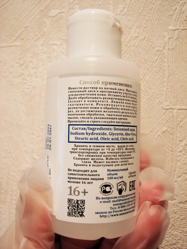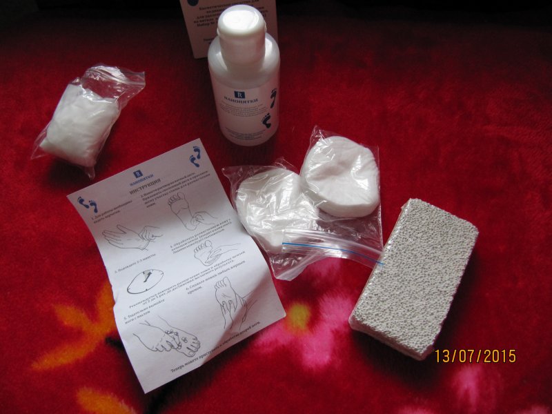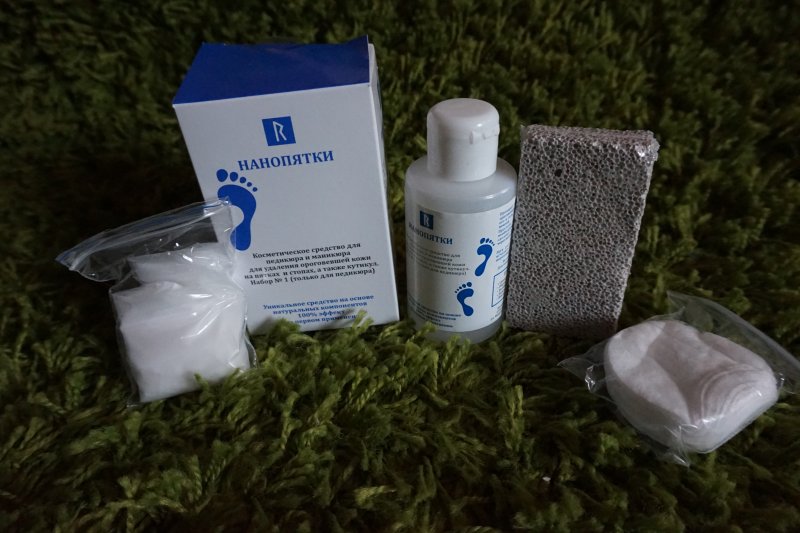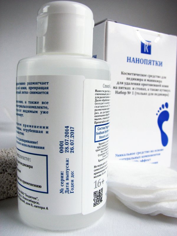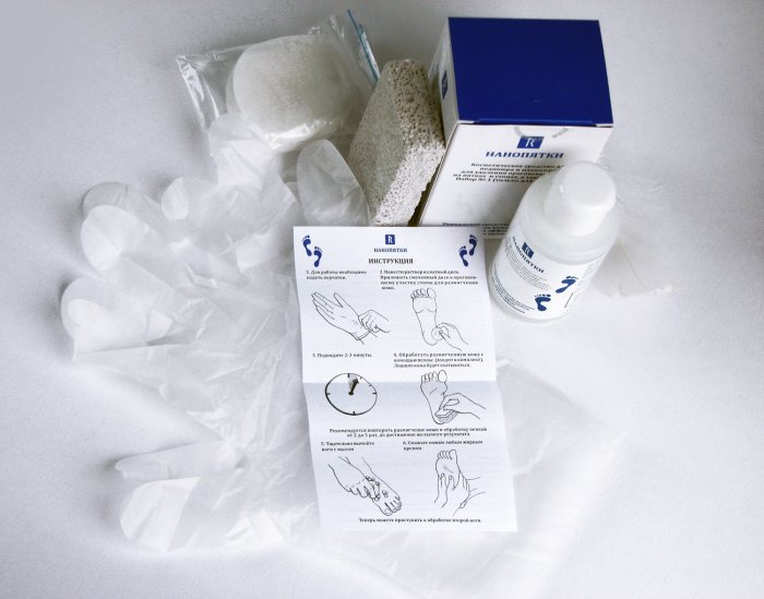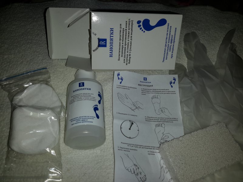 В выходные наконец то открыла свой набор "Нанопятки", все компактно упаковано объем приличный так же предусмотрены перчатки (что немало важно работая с щелочью) ватные диски и пемза.Инструкция вполне доступная.