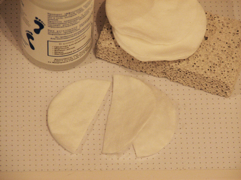ватные диски мы разделили 2 части (думаю так лучше и средства меньше расходуется на пропитку дисков) процедуру повторили 5 раз (в инструкции указано от 2 до 5 раз) так сказать по максимуму.