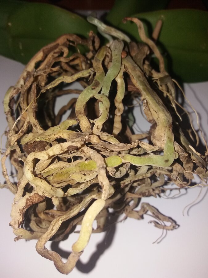 Вот глядя на все корешки, подскажите, надо ли обрезать сухие? Или как есть в горшок посадить?