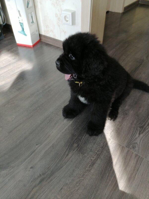 Пока все немного в шоке. Только старший кот с железо-бетонной психикой воспринял как должное, сразу познакомился, понюхал, попробовал собачий корм  |