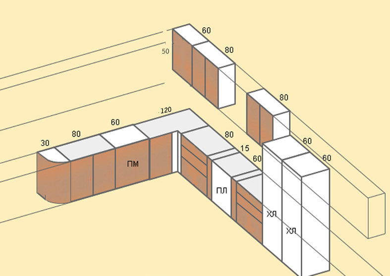 Угловые шкафы закругленны.
