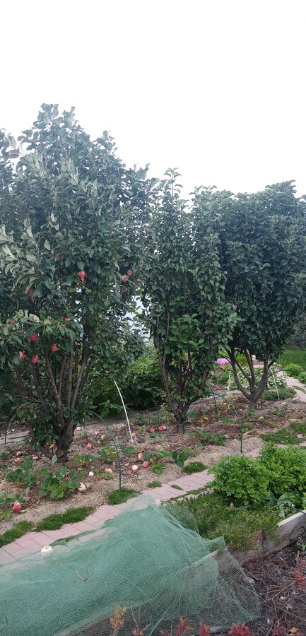 Плодоносит в этом году только сеянец КВ1 "Осеннее алое" урожай 2 ведра широких 10л "как из под краски/шпатлевки". На ДС 7-8 висит одинокое яблочко)))) хотя, цвели все три. Видимо, заморозки или отсутствие насекомых.
