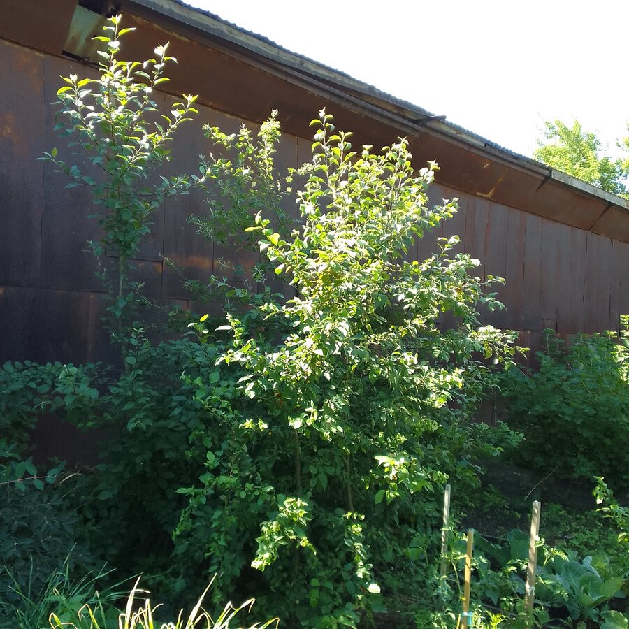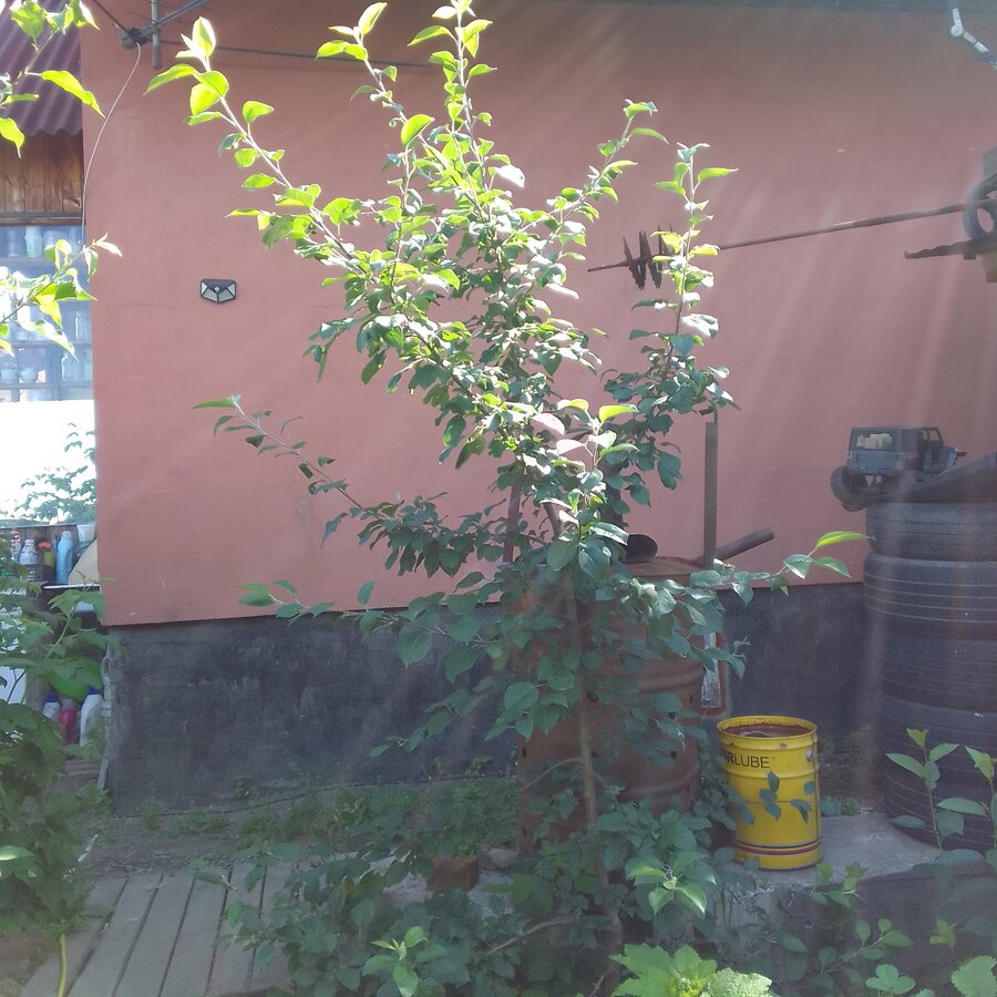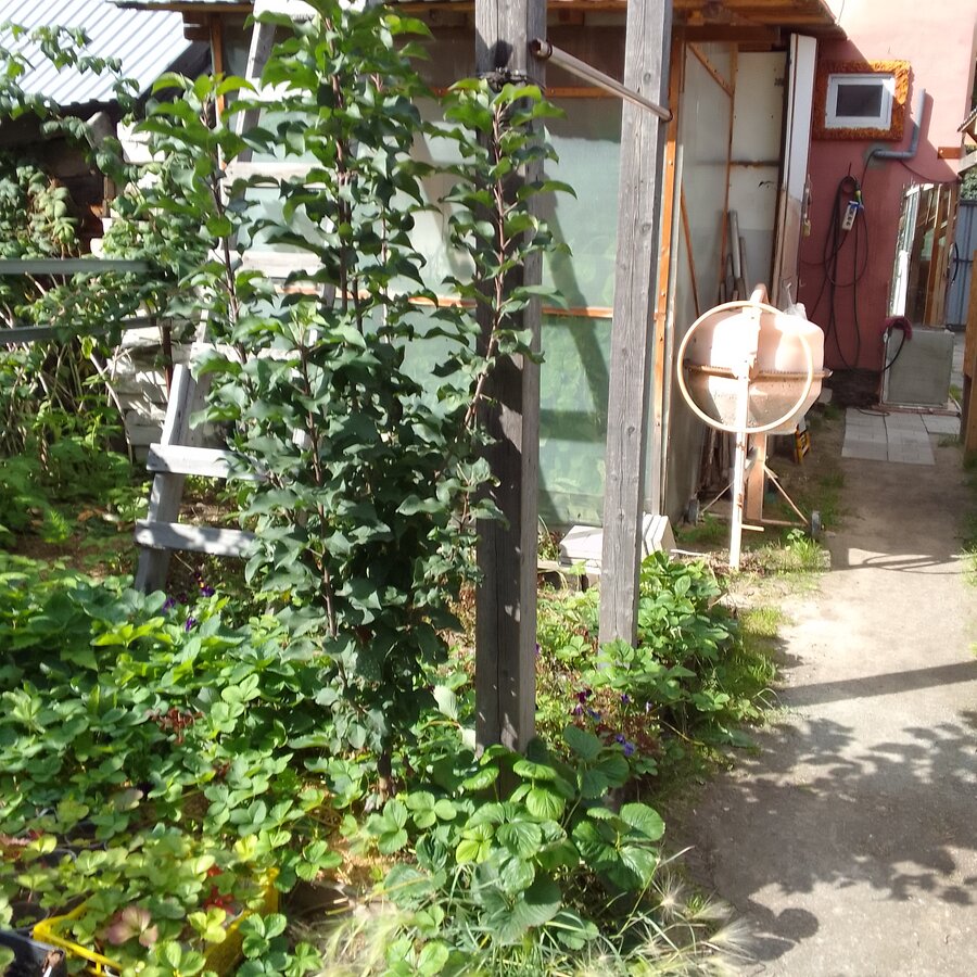 И по скольку думала что это колонна,я недалеко грушу посадила. Так они теперь перехлестнулись. Так как груша тоже также ветвится. Она изначально двумя стволами была, под углом острым.Весной один ствол убрали и вот это ветвление пошло.