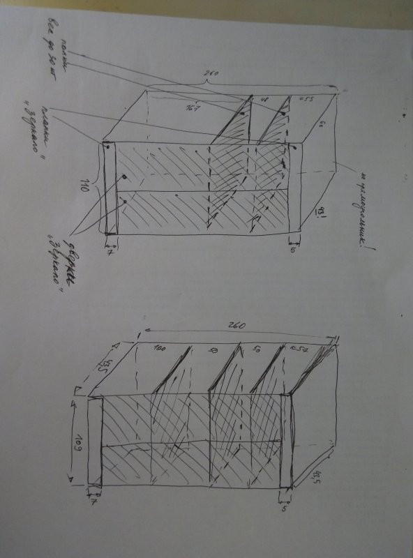 Нужно закрыть две ниши дверками (зеркало или зеркальная пленка), внутри полки.