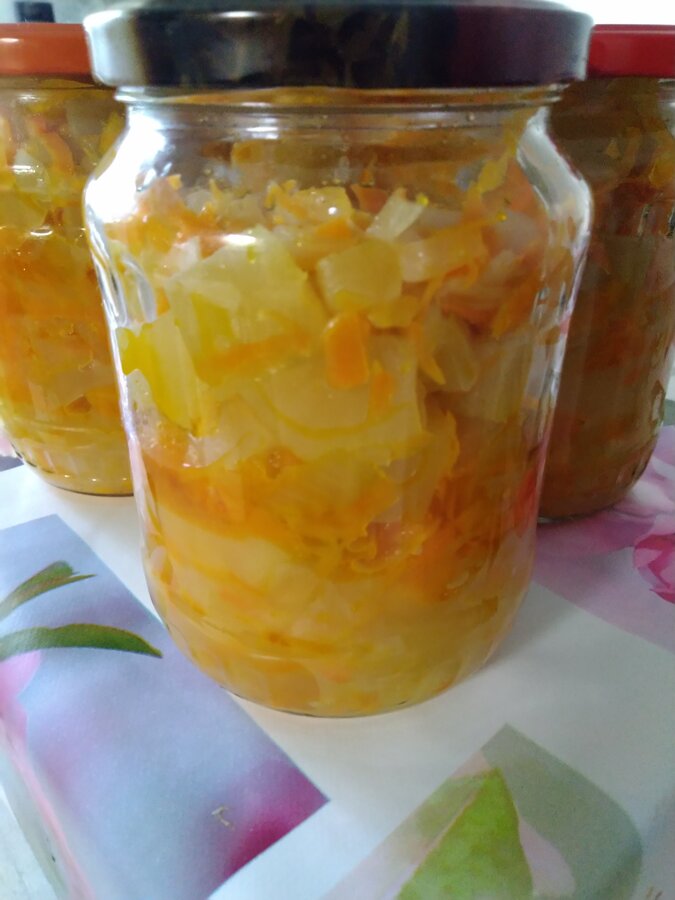 сделала в выходные салатик. Из 2 кг кабачка получилось 5 банок 700 гр. Вот только меня немного смущает, что маринада полбанки 🤔часть кабачков без маринада так и должно быть? Нормально хранится? И ещё вопрос кабачки должны хрустеть? Посмотрим, что получится... Немного попробовала 😋
