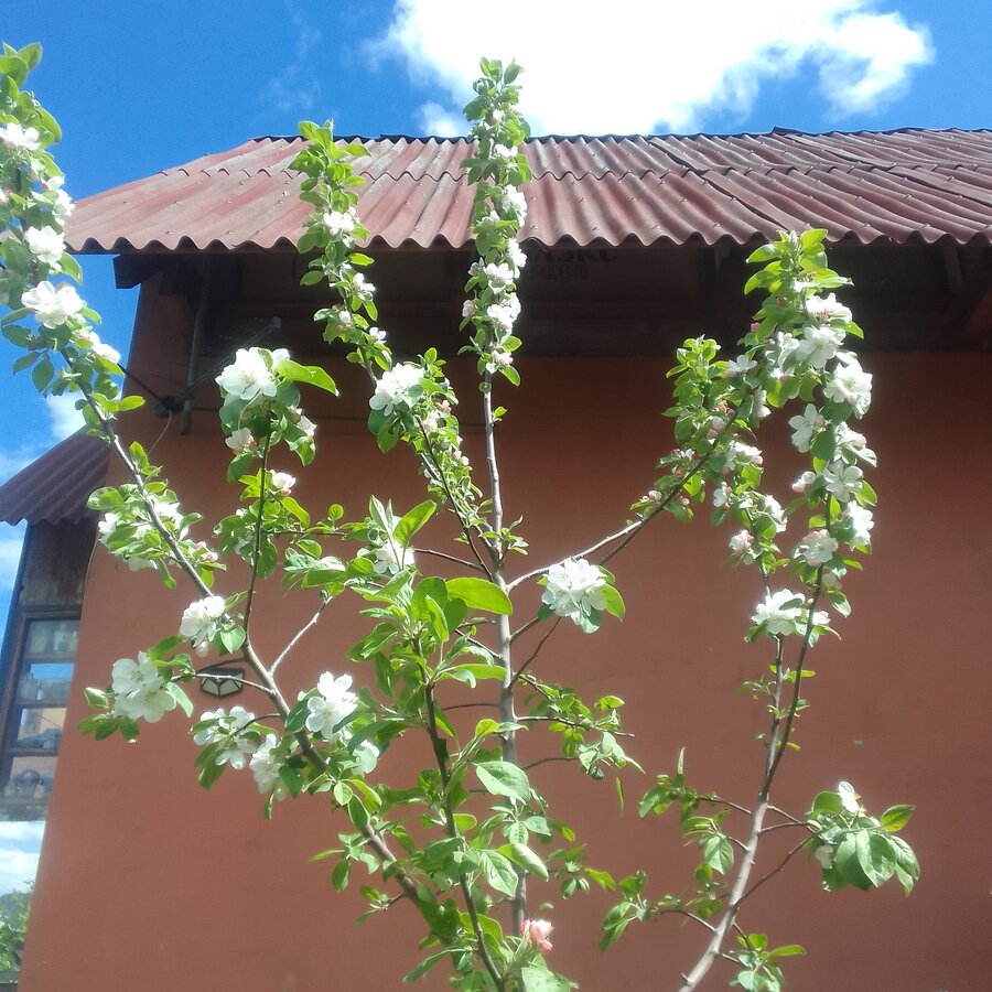 Яблочки на ней мелкие, учусь прививать на неё. Что интересно, в прошлом году прививала на неё черенки от полукультурок и от культурной(Конфетное), так вот полукультурок она приняла прививки, а Конфетку нет. А в этом году (я ж не отстану😁) опять на неё попробовала Конфетную привить - приняла. Да еще и грушу примотала)) пока прижились прививки, посмотрим что будет.