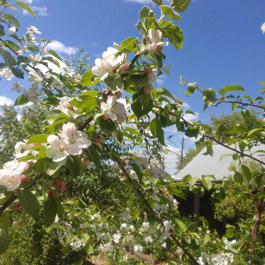 Не хвалилась , хотела сразу яблоками :haha: по осени. Еще примерно на участке 10 яблонек-сеянцев пока не цветут. Согласна с Наташей, есть одна яблонька в меня из семечка ,взошла как-то самосевом , зацвела она на третий год уже, так как не пересаживалась.