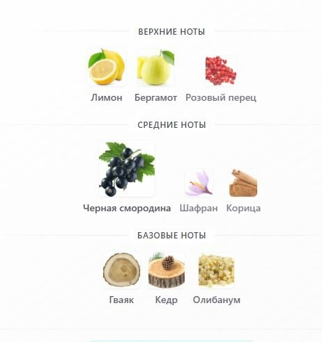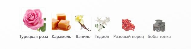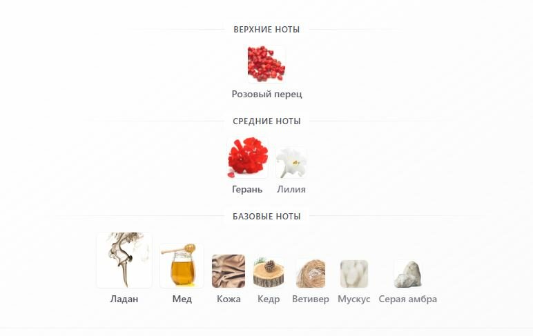 Верхние ноты: жасмин, кардамон и черный перец;