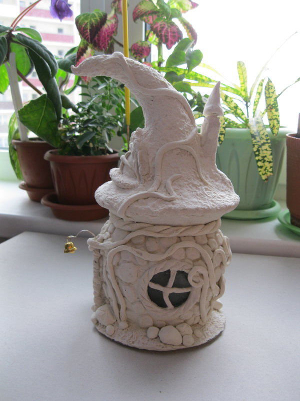 Леплю вот такие домики-светильники и домики-шкатулочки