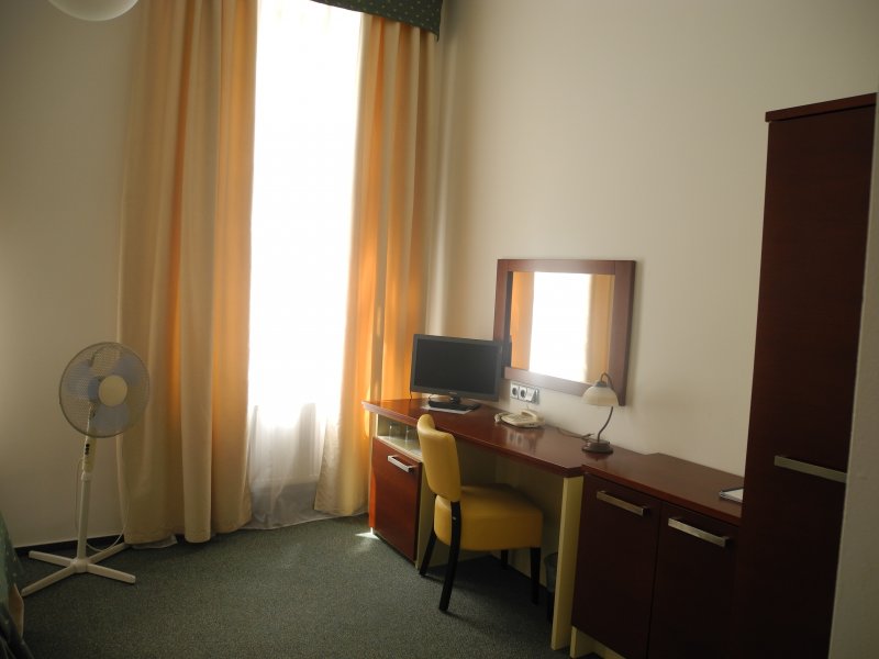номер очень маленький, большую часть занимает кровать)