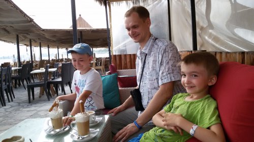 В кафешки с детьми заходили, чтоб посидеть передохнуть выпить кофе с мороженым. По цене на 4-х нам выходило 12-15 долларов( 25-30 динар). Доесть все что взяли мы ни разу не смогли, порции большие очень.