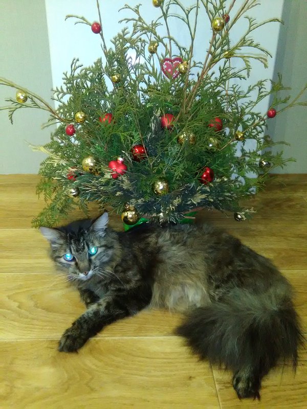 Ёлка мне самой не нравилась. Я ведь не подумала даже, что котик боролись за красоту :haha: