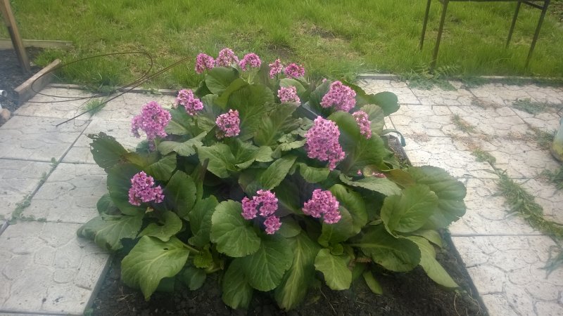прелестный кустик бадана! и листики такие сочные. у меня почему то коричневые пятна на листьях бадана, портят вид...