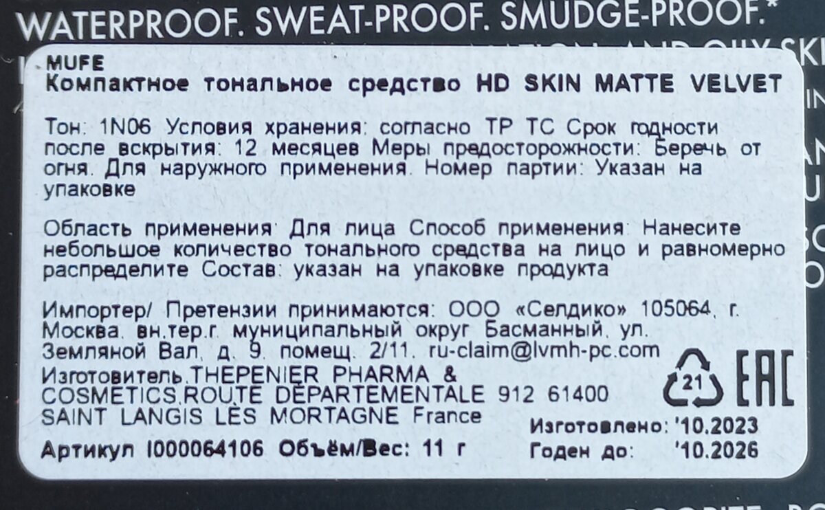 Make Up For Ever HD SKIN Matte Velvet 1N06 - новая пудра!