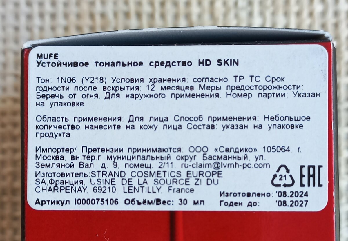 Make Up For Ever HD SKIN FOUNDATION 1N06 - новый тон!