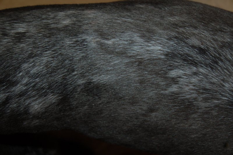 На спине в проплешинах хорошо видно, что кожа чистая. По-моему, только Мерадог такой эффект давал.