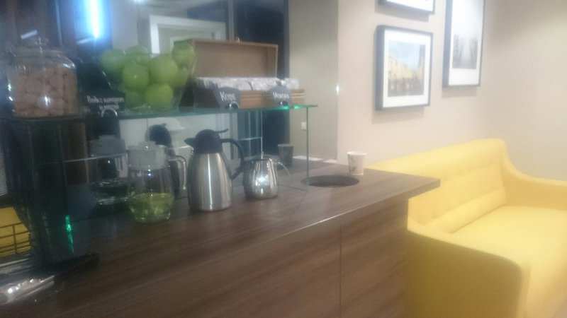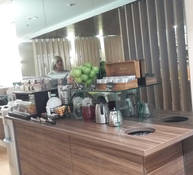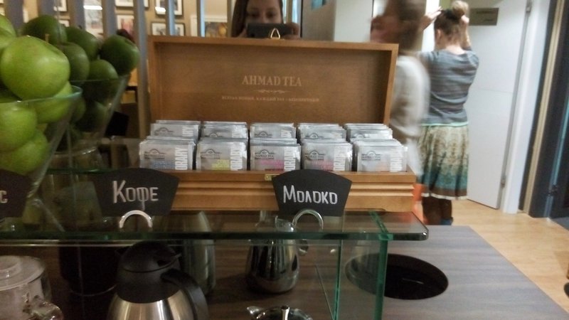 Очень уютная зона ожидания с релаксирующей музыкой и видеорядом. О зоне кофе тут уже много писали, в свободном доступе - кофе, чай, печеньки, вода с лимоном, фрукты.