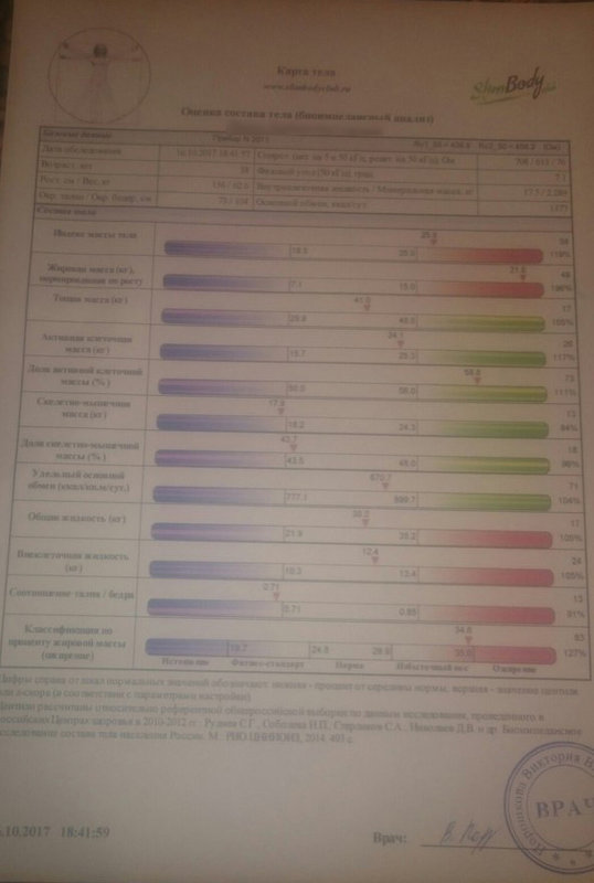 Некоторые моменты в выданном результате порадовали, некоторые огорчили. Диетолог дала небольшие рекомендации касаемо режима питания и физических нагрузок.