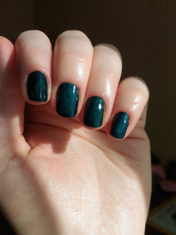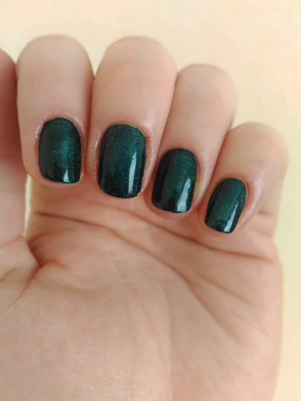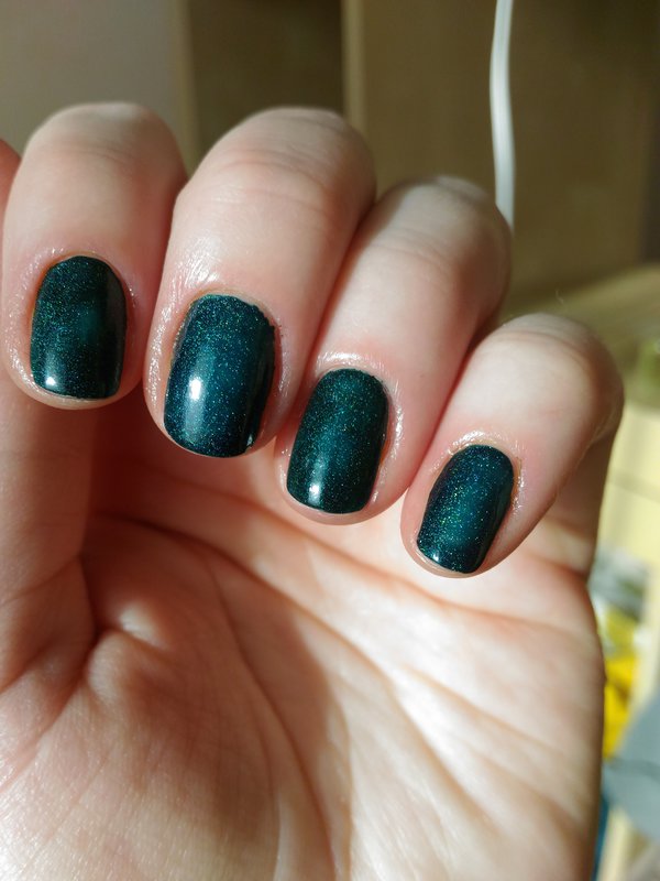 Вот что получилось. Указательный, безымянный - A-England, средний и мизинец - Masura. В один слой оба лака, у Масуры слой потолще. Топ был, но хлорка в бассейне его с'ела)