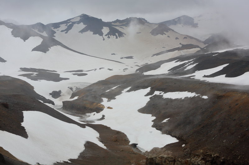 Несмотря на то, что это один из самых доступных и посещаемых вулканов, он один из самых суровых. И даже в конце июля добраться до него не так-то просто - только на вахтовках, либо авто, специально адаптированных под этот маршрут