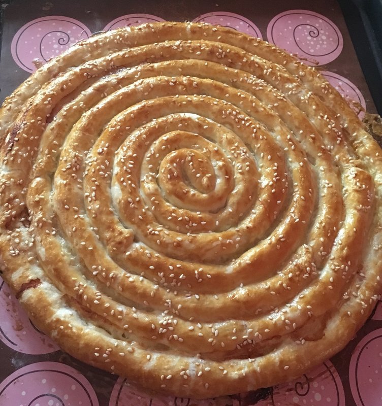 Я тоже испекла спиральный пирог, делала пару раз как-то давненько, спасибо Симаме и флемшобу, что напомнили о таком виде выпечки! Тесто слоёное магазинное, начинка: кальмары отварные (не соломкой, помельче, чтобы удобнее сворачивать трубочки, яйца варёные кубиком, тёртый сыр, пассерованный лук, чуть-чуть сметаны добавила, чтобы начинка не рассыпалась на тесте. Вкусно получилось