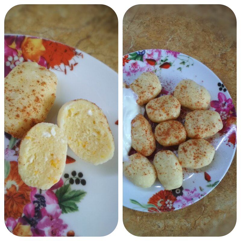Творог Купинский 5% 400г, одно яйцо, соль сахар по вкусу, муки- что б лепилось, чуточку ванилина для аромата.