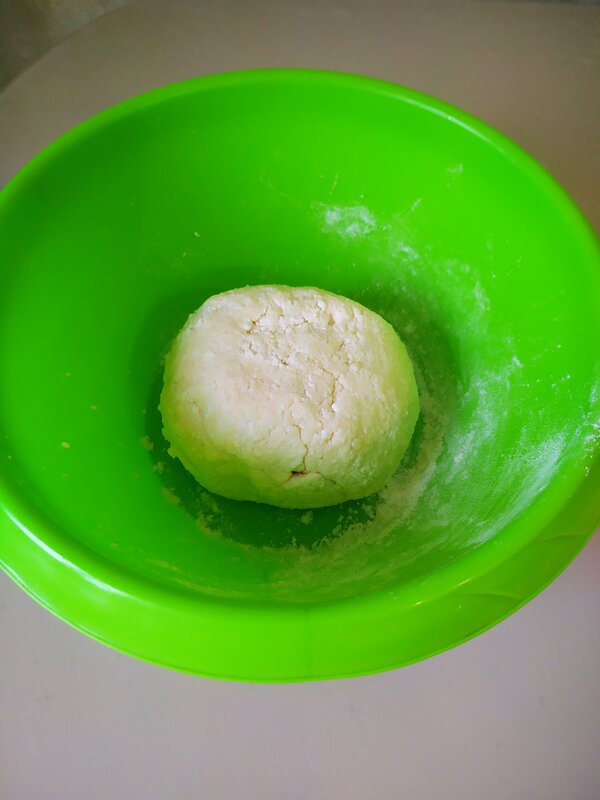 Указываю все в граммах, на такое кол-во творога можно было взять 2 целых яйца, у меня по факту меньше, в таком случае и муки потребуется меньше,чем 100 грамм. Мне показалось, что творожное тесто довольно плотное, поэтому рекомендую взять 80-90 г рисовой муки.