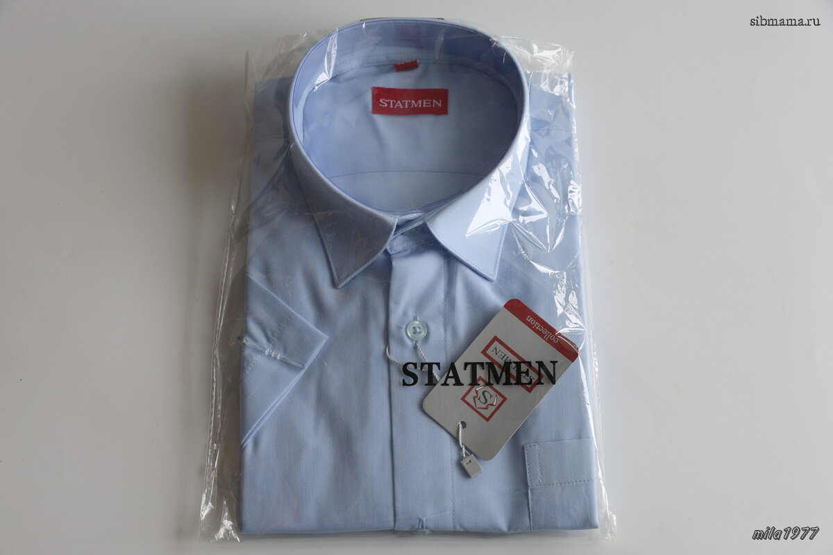 Рубашка STATMEN НОВАЯ цвет: голубая с коротким рукавом, размер 35 на рост 152-158 - 700 руб Хлопок 80%, модал 20%. Длина 70 см, ширина подмышками 47 см, классическая. Большемерка, скорее, для роста 158.