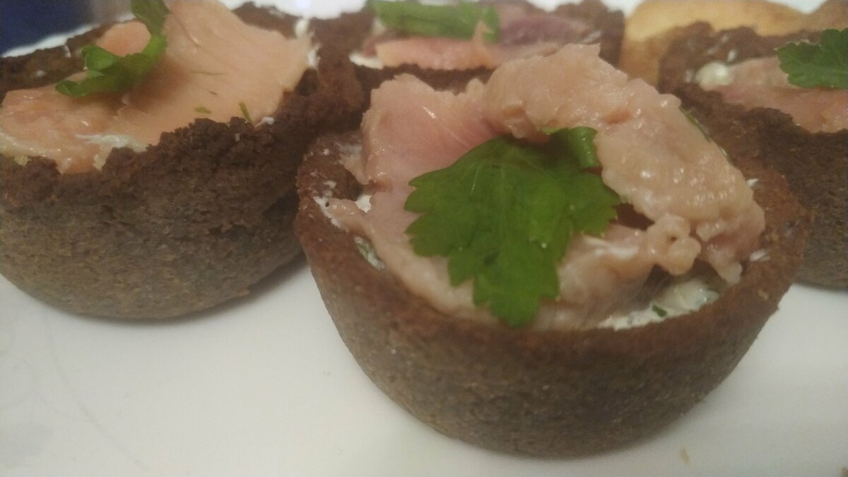 Начинили тарталетки из черного хлеба. Не ожидала, что вкус будет таким "нарядным". Муж сказал, новогоднее блюдо. Однозначно будем готовить.