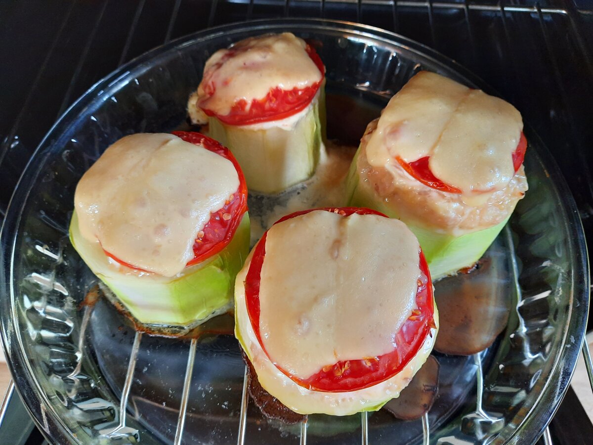 Кабачки же или нарезаю повдоль на две "лодки" - и наполняю фаршем, сверху майонез и выпекаю. Или нарезаю на кружки и внутрь кладу фарш, майонез и выпекаю.