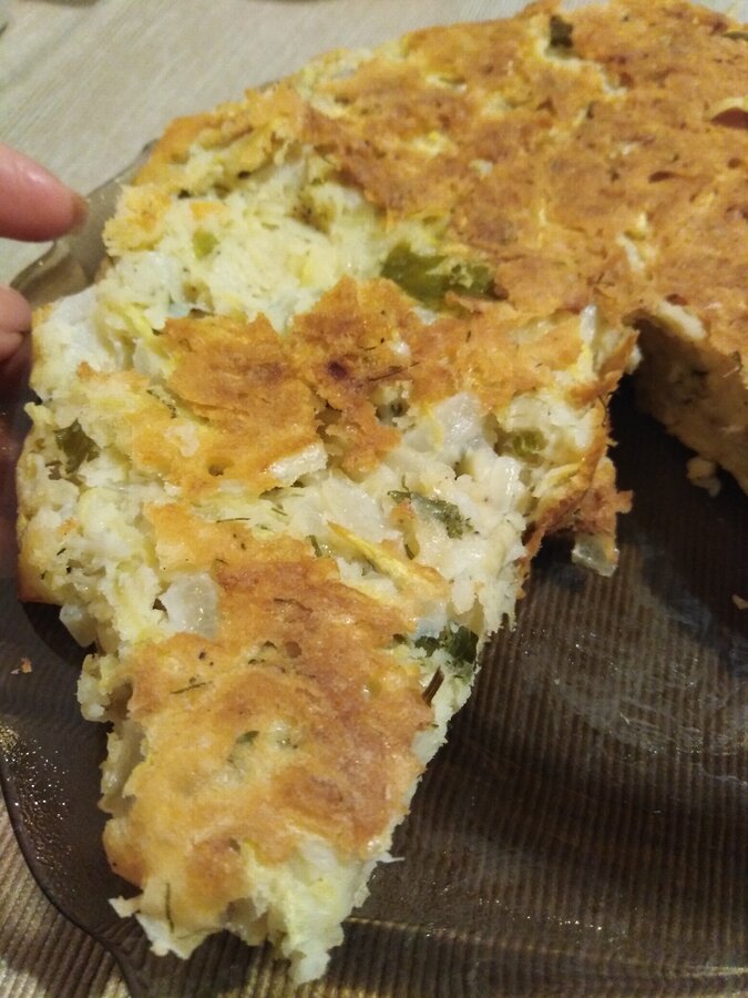 Написано в рецепте выпекать на пергаменте. У меня он прилип к пирогу. В целом, быстро и съедобно. Мужу понравилось.