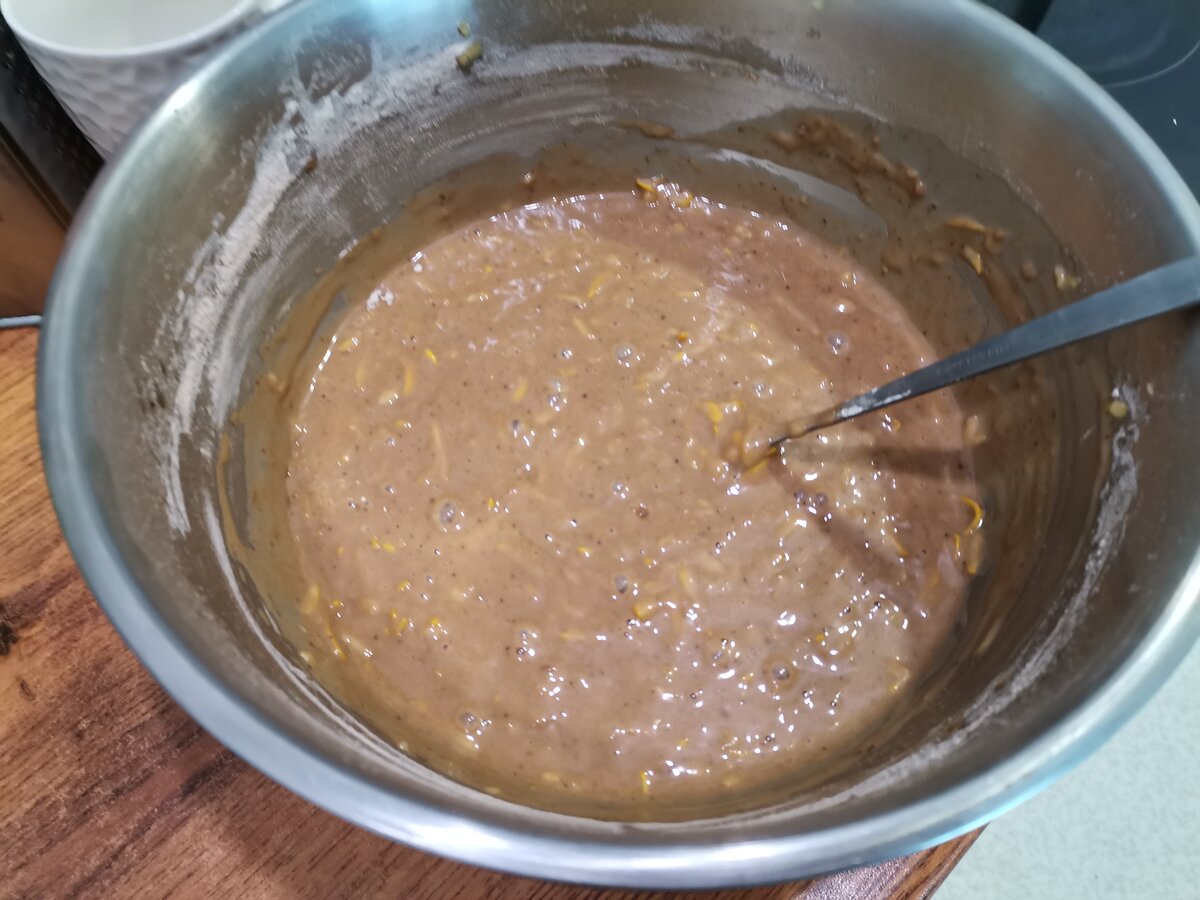 Сегодня вместо части муки добавила хороший ячменный талкан, молотое льняное семя, какао и шоколадные капли. Пеку в мульте.