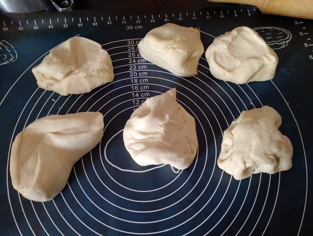Тесто делим на 3 кусочка, скатать каждый в шарик. Раскатываем каждый в небольшую лепешку. В центр лепешки кладем по 1/3 от всей начинки. Собраем края вверх и залепляем в виде мешочка. Перевернуть швом вниз и аккуратно раскатать скалкой в тонкую плоскую лепешку. Можно руками разгладить.