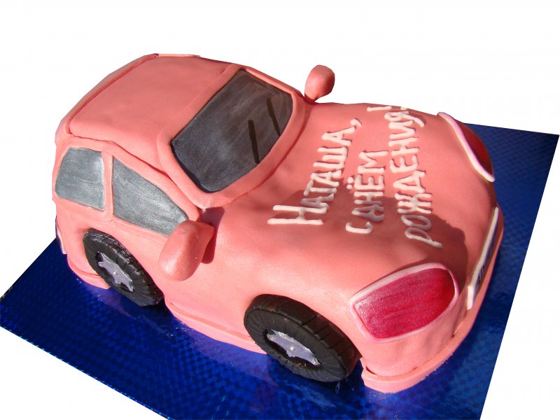 Просто розовая машинка. Внутри ванильный бисквит, крем сливки+сметана+варёнка, орехи.
