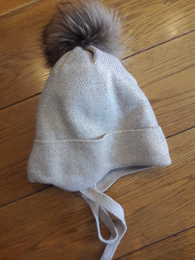 Шапка зимняя ( на синтепоне)на девочку Orso Bianco, новая, на завязках.Помпон из натурального меха (съемный).Маркировка по объему головы 52