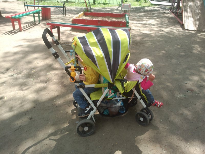 Всем привет! Делюсь опытом насчет коляски для погодок (или для двух детей с разницей в 1-3 года). Есть замечательный вариант - см. фото. Старший ребенок может ехать стоя на подножке, держась за ручки, или сидя спиной к младшему. Мы просто не нарадуемся. Долгие прогулки - не проблема. Старший набегался - устал, сел. Не нудит, не нужно его тащить за руку и т.д. Если кому нужна такая - пишите в личку.