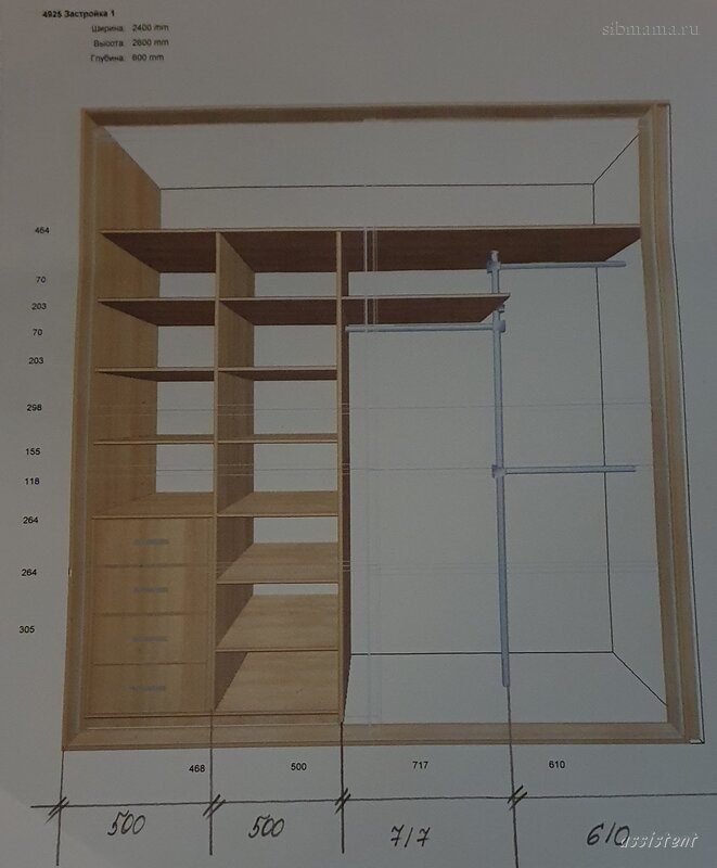 И во встроенной нише понаделать полочек и штанг (97*40). Оформить в гардеробную