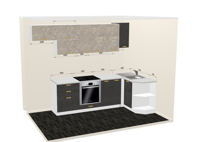 Здравствуйте, нужен кухонный гарнитур, кухня 7,1 м2 , угловая. стены 3,07*2,31. на кухне есть углубление , проходят все стояки. В связи с чем угловой шкаф нужен глубже остальных ( 25-30 см) и высота верхних почти до потолка. Из техники втравливаемая варочная и духовой шкаф, отсек (полка) под обычную микроволновую печь. Холодильник отдельно стоящий , около окна .