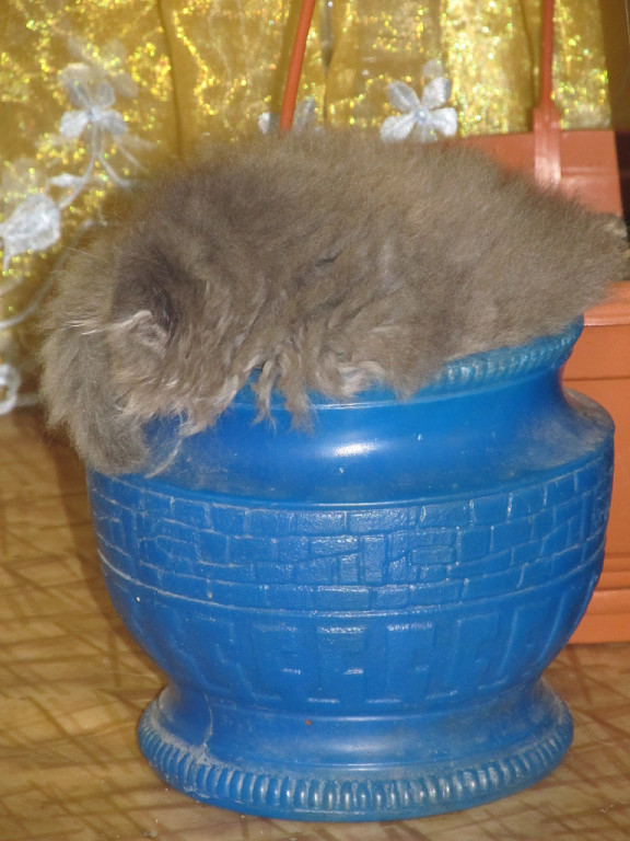 У нас в доме есть необычное, очень притягательное ведро. Оно старенькое, местами уже разбитое, но выбросить его рука не поднимается. :haha: Оно - место кошачьих прятушек и посиделок. :haha: