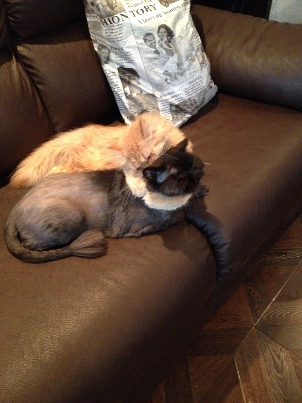 да...кот на спину ложился..а они по нему бегали...массаж делали.