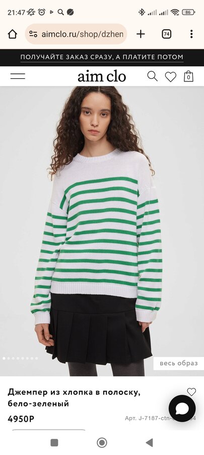 Джемпер Aim Clo, размер 44, состав 50 хлопок, 50 акрил. Цена 1500 рублей.