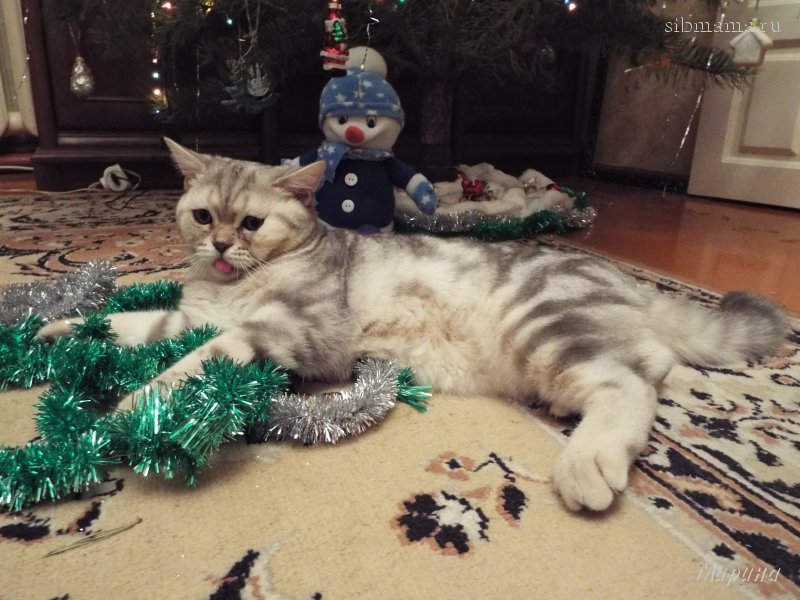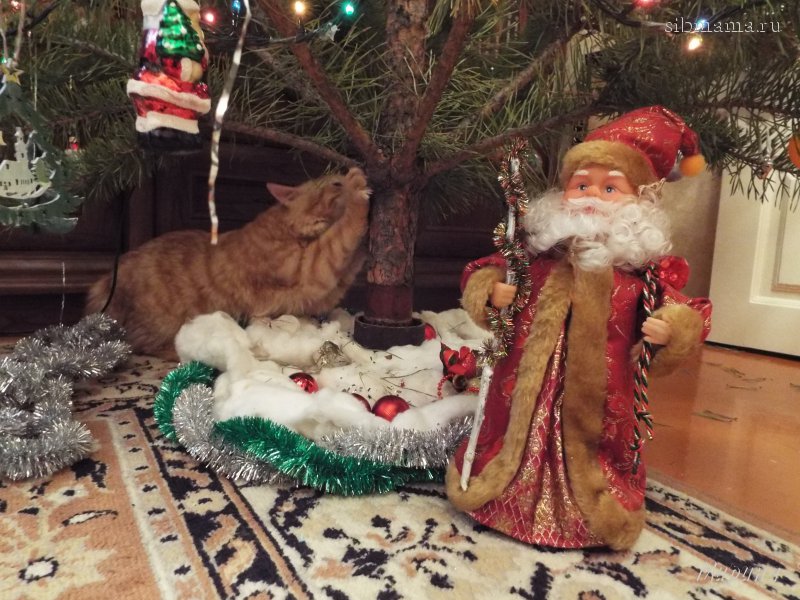 У нас ничего смешного так-то нет, кошечка первый год с нами встречает праздник. Наша любимица. |