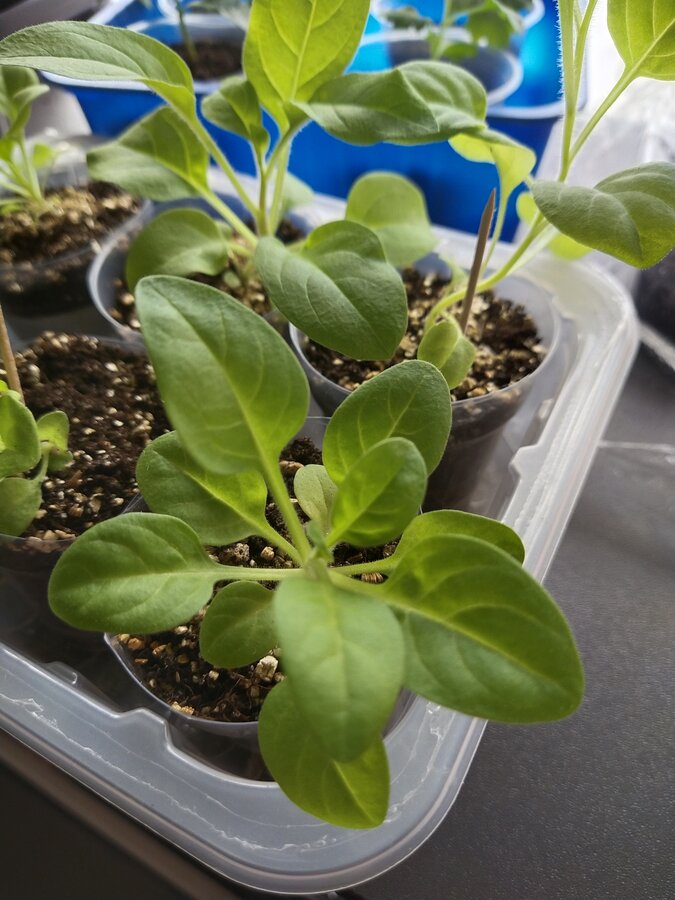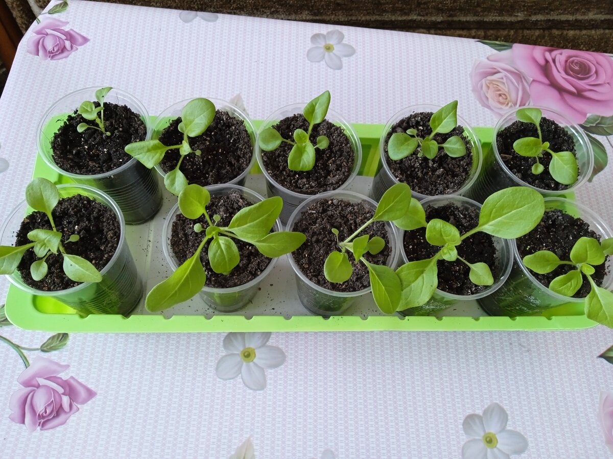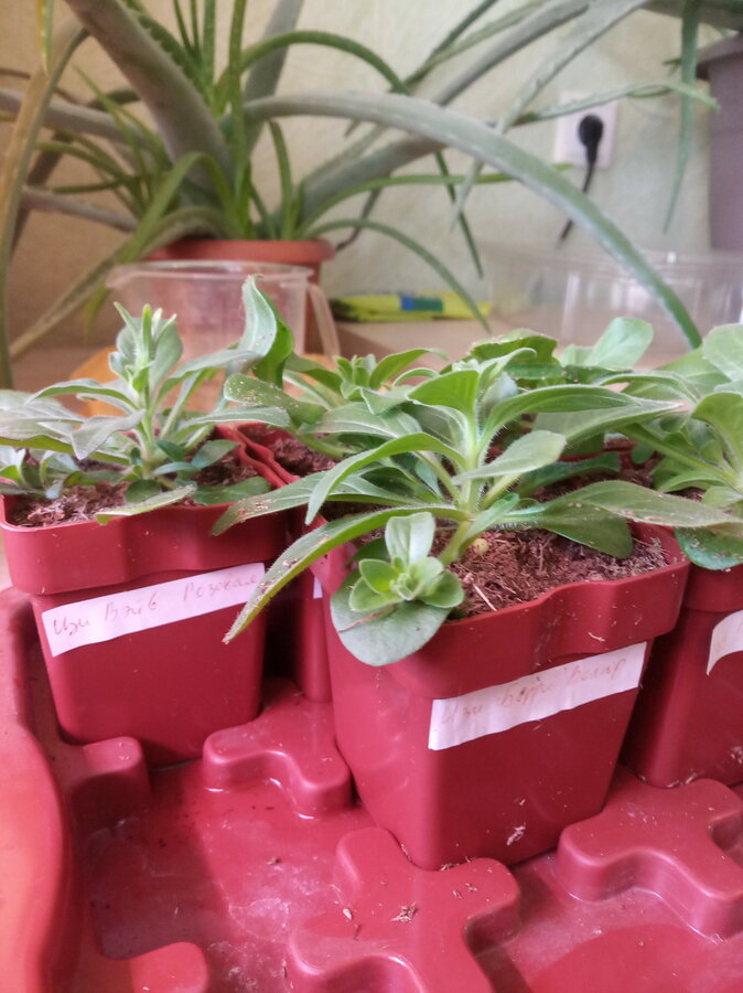 Прошлые годы на пятой неделе они у меня уже в бутонах стояли и с плетями по 15-20 см. Но жили в тепле в фотостудии. В этом году стоят в прохладе на крыльце, средняя температура 13°С, развиваются поспокойнее)))