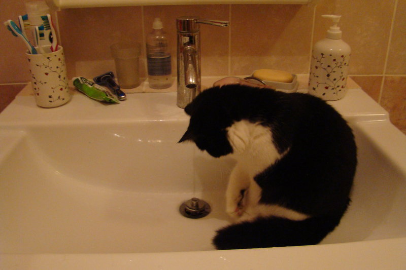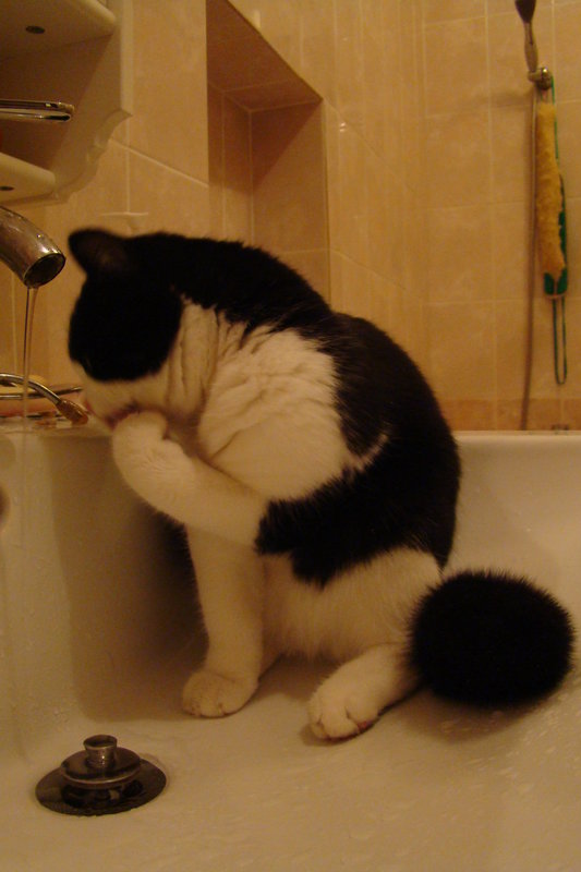 Мне кажется киска подумала, что это новый лоток. :haha: