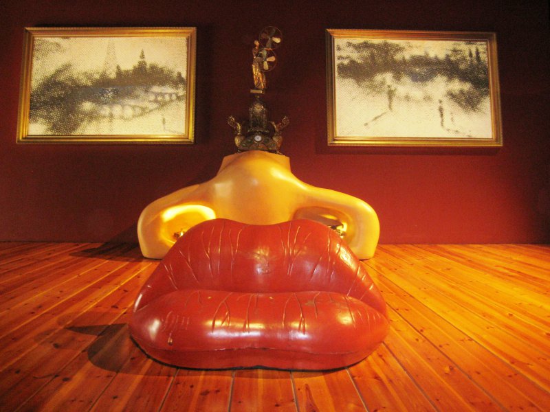 В музее Сальвадора Дали. Комната - лицо актрисы Мэй Уэст, где в качестве глаз картины в рамочках. Нос - камин, губы - диван.