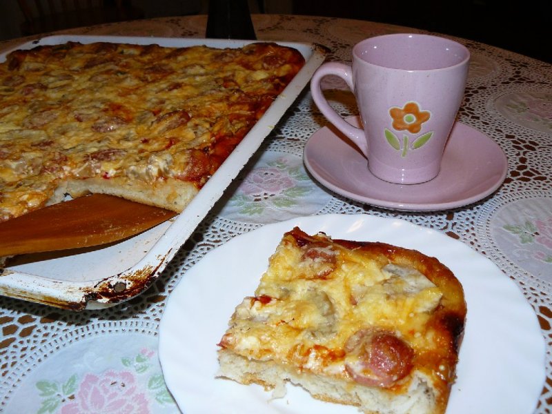 Сегодня сделала тесто в ХП, добавила подкисшее молоко и остатки сметаны--получилась пицца... :haha: ;)