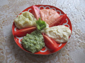 Очень люблю такой вид пюре - когда к картошке добавлены различные наполнители. В данном случае, у меня в качестве добавок - брокколи, цветная капуста (картошка с ней получается очень нежной, воздушной и вкусной, семья её не идентифицирует), морковь и сливочный творожный сыр. Наполнители отвариваются отдельно, измельчаются и смешиваются с картошкой на стадии пюре. Сливочный сыр - Лукоморье, очень вкусный. Количество наполнителя - по вкусу, я обычно делаю 1:1.