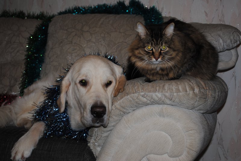 Делала новогоднюю фото сессию с собакой, но Марс тоже никак не мог такое пропустить))