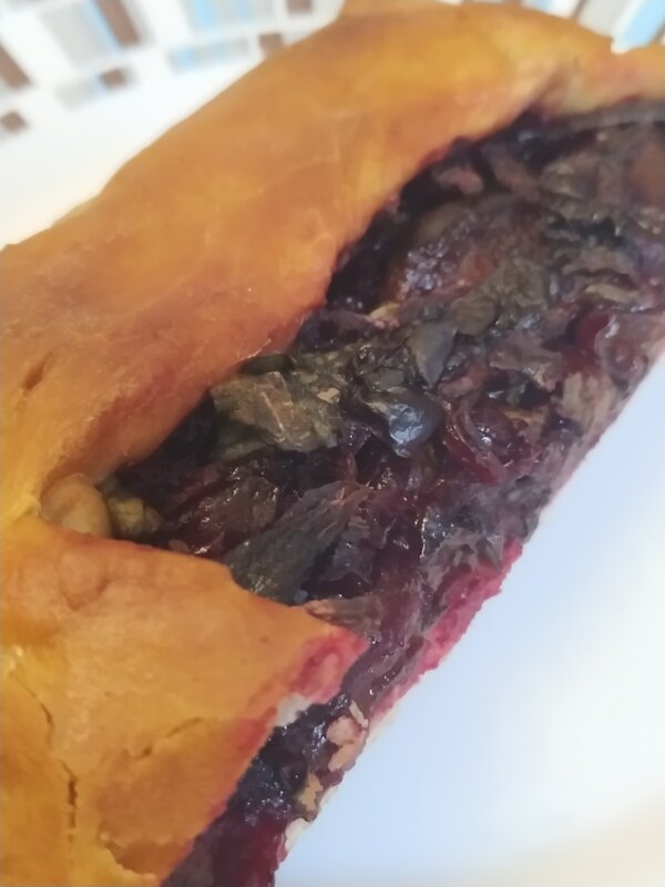 Сегодняшние с одной из любимых весенних сладких начинок, ревень, свекла, домашние пряные маринованные сливы. В начинку ещё добавила крахмал и ароматный сироп от слив.